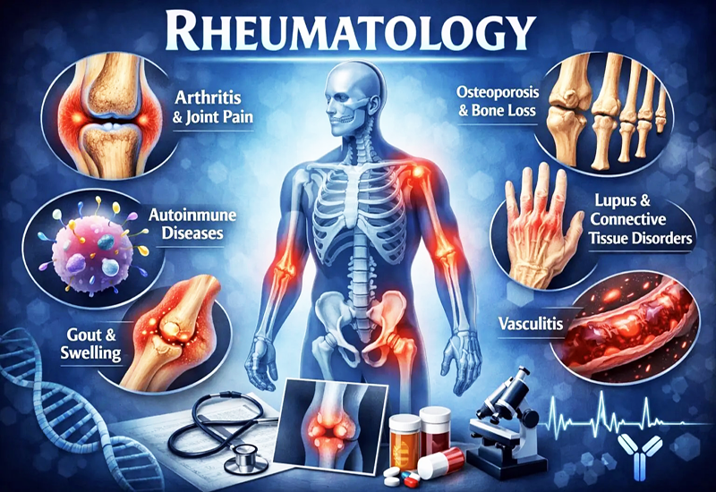 At our esteemed Department of Rheumatology, we are dedicated to delivering comprehensive, evidence-based, and cutting-edge care for a wide spectrum of rheumatic conditions, including arthritis, low back pain, and various autoimmune and inflammatory disorders. Our state-of-the-art facilities, combined with the expertise and experience of our highly qualified medical team, enable us to provide exceptional patient-centered care that has positively transformed many lives.